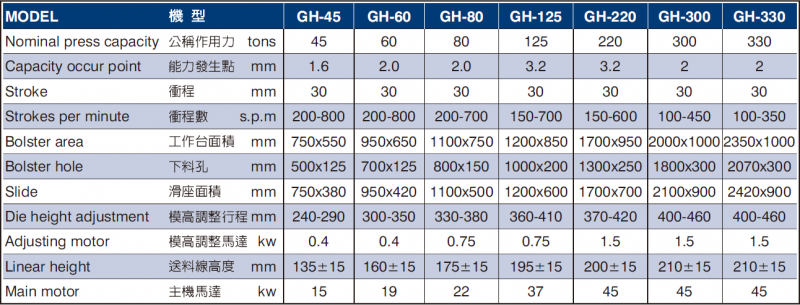 - 加長型導管,應用預壓螺樁之高剛性並配合加長型之導管,使其動、靜態精度超越特級精度。亦使沖壓模具壽命大幅提升。